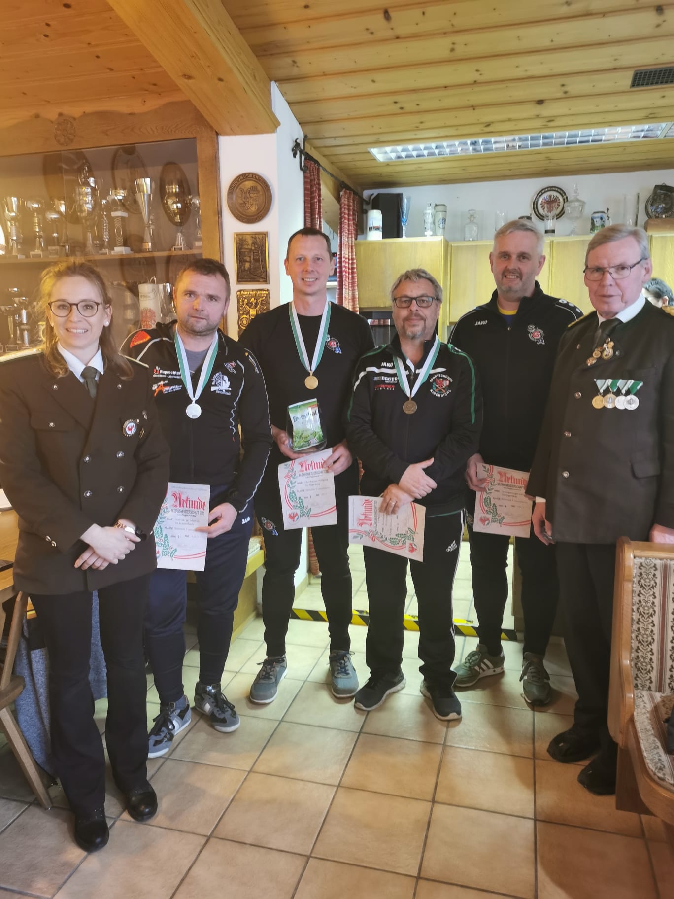 Am Samstag, den 11.02.2023 fand in Bad Häring die Bezirksmeisterschaft für Senioren und Seniorinnen stehend frei und aufgelegt, sowie Männer und Frauen stehend aufgelegt statt. Um 10.00Uhr starteten die stehend frei Bewerbe. Oberhauser Wolfgang erreichte mit einem Ergebnis von 393,4 Ringe überraschend Rang drei und somit die Bronzemedaille. Um 12.40 Uhr gingen dann unsere Senioren 1 Schützen an den Start. Heidi Oberhauser erreichte mit 409,4 Ringe bei den Seniorinnen 1 den ausgezeichneten 4. Rang. Ebenfalls den ausgezeichneten 4. Rang belegte Edi Unterpertinger bei den Senioren 1. Bezirksmeister in der Senioren 1 stehend aufgelegt Klasse wurde mit 421 Ringe Oberhauser Wolfgang. Zu guter Letzt startete noch in der Herren Klasse Egger Hannes in seine allererste Bezirksmeisterschaft. Mit einer ausgezeichneten Schuß Leistung erreicht er überraschend den hervorragenden 2. Rang und somit den Vize Bezirkmeister.